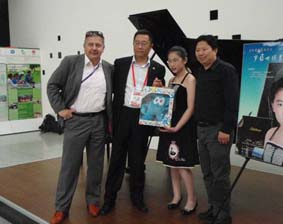 羅維在現(xiàn)場演奏了《莫扎特330奏鳴曲》、《瀏陽河》、《拉赫瑪尼諾夫》、《愛之喜悅愛之憂傷》等多首曲目。優(yōu)美的旋律、德國國寶-博蘭斯勒鋼琴黃金般的音色,讓現(xiàn)場觀眾大飽耳福?,F(xiàn)場座無虛席,絡(luò)繹進(jìn)館的游客都被這美妙的琴聲深深吸引,駐足停留欣賞。世博會(huì)主題館部章克勤部長、主題館設(shè)計(jì)德國設(shè)計(jì)公司總經(jīng)理雷曼先生及博蘭斯勒鋼琴中國區(qū)總經(jīng)理方陽先生也到場欣賞了羅維的精彩表演。演出結(jié)束后章克勤部長送給羅維小朋友一個(gè)世博吉祥物-海寶作為六一兒童節(jié)的禮物并祝演出成功。