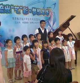 由中國移動攜手博蘭斯勒舉辦“流光“藝”彩·夢想年華”中 國移動尊貴客戶子女藝術交流活動于2009年7月中在中山舉行。 此次活動邀請了享有“國際殿堂級鋼琴詩人”之稱的鋼琴大師趙胤 胤親臨指導。雖然當天天氣非常炎熱,但也無法阻擋大家來參加活 動的熱情,當?shù)弥F(xiàn)場能得到鋼琴大師的親自點評時,大家心情都 非常的激動。 來到現(xiàn)場的觀眾陣容可謂空前強大,有的是全家老 小齊出動,還有的家長帶著鋼琴老師一起來到活動現(xiàn)場。