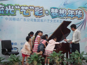 南方的夏季是多雨的季節(jié),更是變幻無常的季節(jié)!盡管5月 23-24日,東莞市連續(xù)兩天大雨傾盆,雷電交加,卻擋不住東莞琴 童家長望子成龍、望女成鳳的熱切心愿,更擋不住莞城琴童的求學(xué) 熱情。因?yàn)檫@兩天,中國移動(dòng)廣東分公司為集團(tuán)客戶子女舉辦了一 場與鋼琴大師面對面的交流活動(dòng),這次難得的交流活動(dòng),是國際鋼 琴大師趙胤胤先生與有著黃金音色美譽(yù)的德國國寶博蘭斯勒鋼琴共 同攜手為東莞市琴童及家長們舉辦的一場別開生面的鋼琴交流會 —流光“藝”彩,夢想年華!