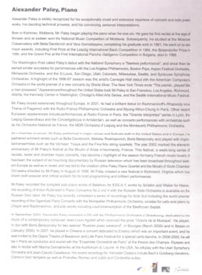 國際著名鋼琴大師-博蘭斯勒鋼琴藝術家-亞歷山大.帕雷,很 多國外的鋼琴愛好者們對于這個名字早已如雷貫耳,對于中國的樂 迷們來說也并不陌生。2006年亞歷山大.帕雷就以博蘭斯勒鋼琴藝 術家的身份獻技于北京故宮,并以精湛的琴技征服了在場每一位觀 眾的心.2009年3月-4月,亞歷山大.帕雷再次受邀來到中國,并以貝 多芬名曲《熱情》作為主題.分別在深圳、武漢、鄭州、北京等城 市開始了本次中國巡演之行。