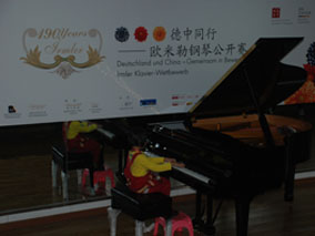十二月十三日,德中同行—歐米勒鋼琴公開賽總決賽在廣州 大學城正式拉開序幕。4臺九尺博蘭斯勒及博蘭斯勒旗下海斯勒, 歐米勒總價值過千萬名琴匯聚廣州大學城。此次大賽的比賽、表 演用琴全部由博蘭斯勒公司提供。被譽為德國國寶的博蘭斯勒為了 支持本次大賽,并能讓選手能更好的發(fā)揮出自己的琴藝,特地從德 國空運到比賽現(xiàn)場為選手門吶喊助威,并由博蘭斯勒德國技師親自 主理。一號賽場的評委老師也是本屆大賽的評委會主席劉詩昆大師 對此琴評價頗高。博蘭斯勒鋼琴不但被譽為德國國寶,還是鋼琴中 的勞斯萊斯。它黃金般的音色為選手們的演奏增光異彩。