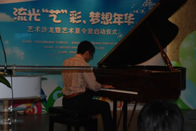 8月2日,由中國(guó)移動(dòng)通信集團(tuán)廣東有限公司主辦的,德國(guó)博 蘭斯勒全程支持的“流光‘藝’彩,夢(mèng)想年華”藝術(shù)沙龍暨藝術(shù)夏令 營(yíng)啟動(dòng)儀式在市少年宮隆重舉行。盡管天氣炎熱,但仍阻擋不了孩 子們虔誠(chéng)熱情的步伐。一大早少年宮演藝廳座無虛席,靜靜等候與 藝術(shù)大師面對(duì)面交流。
