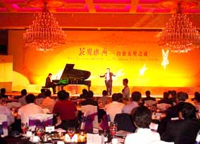 置身花園酒店的金色國(guó)際會(huì)議大廳,來(lái)賓們不僅欣賞到了博蘭 斯勒那黃金般的音色、扣人心弦的優(yōu)美旋律及精彩文藝表演,還品 嘗了豐盛的美味佳肴,獲得了全方位人文、藝術(shù)與氛圍的享受。美 食、美樂、美景融為一體,帶給貴賓們一個(gè)難忘的夜晚!