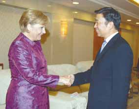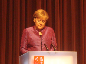 默克爾總理在致辭中也表示,很高興參加此次 “德中同行—走 進江蘇” 啟動系列活動,希望通過“德中同行”,向偉大的中國人 民介紹一個現(xiàn)代化的、有創(chuàng)新精神的德國,為大家展示德國今后三 年的經(jīng)濟、科技和文化。