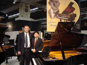 隨著歐米勒孖寶“鋼琴也瘋狂”中國(guó)區(qū)巡演在中國(guó)拉開(kāi)序幕 后,據(jù)相關(guān)人士透露,博蘭斯勒總裁博思進(jìn)博士及其隨從工作人員 專(zhuān)程到廣州歐米勒鋼琴生產(chǎn)廠,進(jìn)行2007上海樂(lè)器展會(huì)新產(chǎn)品試 制及生產(chǎn)設(shè)備調(diào)試的驗(yàn)收工作,這次上海展會(huì)博蘭斯勒投入了強(qiáng)大 陣容-盡300平方的展區(qū)不但展出德國(guó)原裝為紀(jì)念博蘭斯勒誕辰 155周年全球限量版鋼琴,同時(shí)還將展出多個(gè)型號(hào)德國(guó)全新設(shè)計(jì)的 歐米勒鋼琴,博蘭斯勒總裁博思進(jìn)博士對(duì)新產(chǎn)品的試制提出了嚴(yán)格 要求,并對(duì)所有參加試制的 相關(guān)技術(shù)人員講解了博蘭斯勒設(shè)計(jì)鋼 琴的技術(shù)細(xì)節(jié)及 制造工藝要求。歐米勒新型號(hào)完全 采用德國(guó)博蘭 斯勒百年純手工生產(chǎn)工藝,鋼琴品質(zhì)與德國(guó)接軌,并在全球同步發(fā) 售。為加快新產(chǎn)品的開(kāi)發(fā)速度,博蘭斯勒公司不息成本代價(jià)對(duì)所有 新試制的歐米勒鋼琴全都空運(yùn)回德國(guó)萊比錫博蘭斯勒總部進(jìn)行技術(shù) 檢測(cè)。歐米勒新型號(hào)鋼琴將在2008年在中國(guó)全面上市。