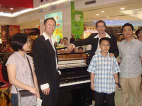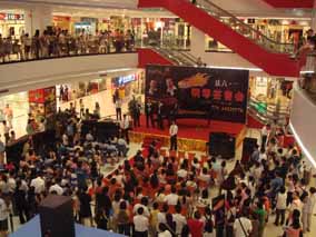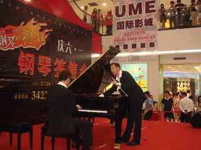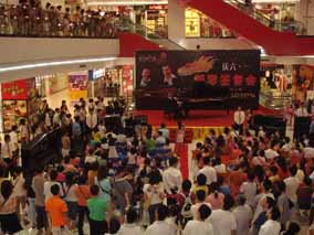 5月26 、27日下午“博蘭斯勒音樂基金會”主辦的 “歐米勒 孖寶”《鋼琴也瘋狂》全國巡演南方廣州站見面會分別在由廣百新 一城及廣百天河店拉開了為時一個半鐘的極其瘋狂的瘋狂演出見面 會。當(dāng)天現(xiàn)場承辦方廣百出動了十余名保安負(fù)責(zé)維護現(xiàn)場,四名貼 身保護“歐米勒孖寶”,層層的人群把現(xiàn)場一樓至六樓圍得水泄不 通。