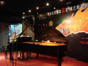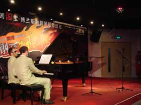 據(jù)深圳樂器城報道:5月17日晚8時 ,深圳樂器城人潮涌動, 深圳市有關(guān)部門領(lǐng)導(dǎo)、德國博蘭斯勒鋼琴公司總裁博思進(jìn)博士( Dr.Christian Bluthner-Haessler )、博蘭斯勒鋼琴(中國) 有限公司總經(jīng)理方陽及德國鋼琴家歐米勒孖寶齊聚一堂,熱烈慶祝 博蘭斯勒鋼琴強勢入駐深圳樂器城。當(dāng)晚,特邀演出嘉賓——歐米 勒孖寶為在場觀眾帶來豪華盛宴,演出會場座無虛席。在場觀眾屏 息觀賞,德國鋼琴演奏家“歐米勒孖寶”深情演繹。他們不僅可以 用手指演奏出精彩的音樂,而且還可以用網(wǎng)球、手肘、拳頭等不同 的花樣來詮釋鋼琴音樂 , 令現(xiàn)場觀眾在臺下如癡如醉激烈歡呼 , 表 演現(xiàn)場喝彩的聲浪此起彼伏,他們用帶有魔力般的四手玩轉(zhuǎn)鋼琴, 他們獨具魅力的鋼琴演奏風(fēng)格讓現(xiàn)場的愛樂人士歡呼雀躍,他們即 興靈活的花樣演奏,讓現(xiàn)場觀眾近距離的親近藝術(shù)、親近歐米勒孖 寶、親近博蘭斯勒鋼琴。