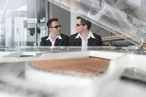您見(jiàn)過(guò)用網(wǎng)球彈鋼琴嗎?一對(duì)來(lái)自德國(guó)的國(guó)際頂尖鋼琴表演藝 術(shù)家Pianotainment鋼琴組合, 他們不僅可以用手指演奏出精彩 的音樂(lè),而且還可以用網(wǎng)球、拳頭等不同的花樣來(lái)詮釋鋼琴音樂(lè) , 令無(wú)數(shù)的觀眾在臺(tái)下如癡如醉激烈歡呼 , 表演現(xiàn)場(chǎng)喝彩的聲浪此起 彼伏,他們 用帶有魔力般的 四手玩轉(zhuǎn)鋼 琴,因此他們獲得全球鋼 琴頂級(jí)品牌—被譽(yù)為德國(guó)國(guó)寶的博蘭斯勒( blüthner )鋼琴旗下 歐米勒鋼琴代言人的殊榮 , 并把他們鋼琴組合的中文名命名為“歐 米勒孖寶”。他們獨(dú)具魅力的鋼琴演奏風(fēng)格讓更多的人開(kāi)始喜歡鋼 琴并成為鋼琴愛(ài)好者,原來(lái)鋼琴也可以與你這樣的親近與你這樣的 貼近 , 一下子拉近鋼琴與大眾之間的距離,這也充分體現(xiàn)了博蘭斯 勒旗下源于 1818 年德國(guó)萊比錫的歐米勒鋼琴的設(shè)計(jì)理念——傳 承經(jīng)典,啟示未來(lái)。