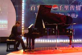 2 月15日 ,百事可樂(lè)千里傳情-藍(lán)色無(wú)言浪漫之夜音樂(lè)會(huì)于廣 州市正佳廣場(chǎng)隆重舉行。活動(dòng)由百事音樂(lè)與博蘭斯勒鋼琴中國(guó)公司 共同舉辦,為確保音樂(lè)會(huì)現(xiàn)場(chǎng)演奏的最佳效果,博蘭斯勒鋼琴中國(guó) 公司專為此次音樂(lè)會(huì)提供一臺(tái)價(jià)值140多萬(wàn)元人民幣的專業(yè)演奏九 尺三角鋼琴。殿堂級(jí)鋼琴藝術(shù)家趙胤胤為熱情的觀眾獻(xiàn)上一曲曲優(yōu) 美動(dòng)聽(tīng)的世界名曲,這些曲目都來(lái)自最新發(fā)行的專輯——《無(wú)言的 浪漫》。除了頃情演奏專輯中的鋼琴曲目,趙胤胤還創(chuàng)新嘗試與百 事音樂(lè)的吉他、貝司等合作表演,更是別有一番韻味在其中。