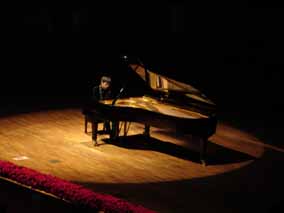 有著“鋼琴詩人”美譽的世界殿堂級鋼琴 家趙胤胤 先生在本 場音樂會上共表演四首曲目,分別是古典風(fēng)格的莫扎特《鋼琴奏鳴 曲K331 》、浪漫唯美的中國民間經(jīng)典《梁?!贰⒗钏固刂磷鸺壸?品《愛之夢》與第一部融爵士樂和交響樂風(fēng)格于一體的《藍色狂想 曲》。整個美好的夜晚,趙胤胤靈動的手指在黑白琴鍵間輕快飛舞 ,化為一串串醉人的音符,時而豪放飛揚,時而寧靜舒緩,猶如一 個巨大的磁場,深深地吸引著聽眾,每個部分演奏完畢,雷鳴般的 掌聲一陣熱過一陣,他用四首曲目征服了現(xiàn)場所有人。
