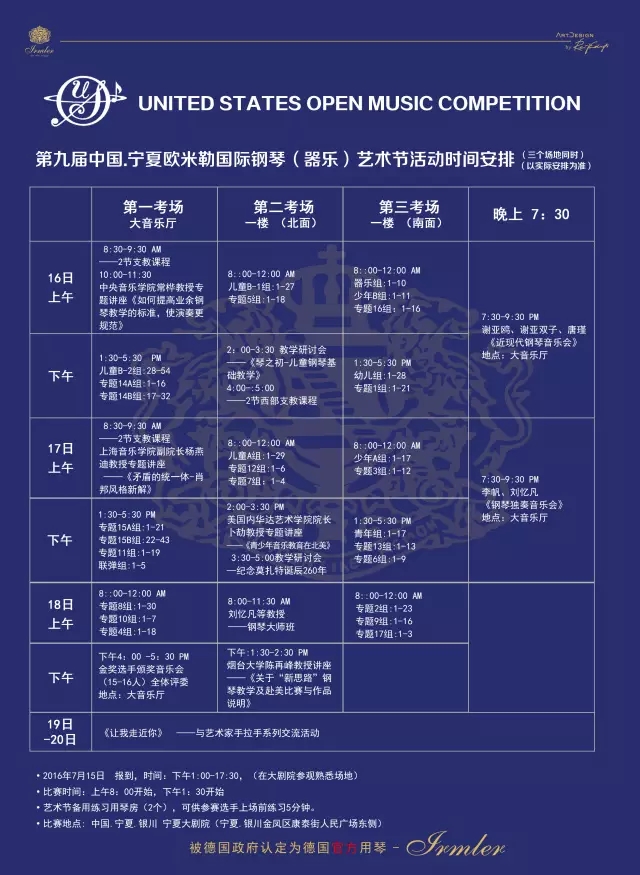 第九屆中國(guó)·寧夏歐米勒國(guó)際鋼琴藝術(shù)節(jié)是在美國(guó)音樂(lè)公開(kāi)賽中國(guó)賽區(qū)選拔賽基礎(chǔ)上,融入國(guó)際知名專家教授參與的音樂(lè)大師班、音樂(lè)會(huì)、學(xué)術(shù)交流、藝術(shù)招生等為一體的綜合性的非營(yíng)利性音樂(lè)藝術(shù)活動(dòng),旨在為廣大從事音樂(lè)藝術(shù)教育和演奏的音樂(lè)愛(ài)好者提供一個(gè)相互交流、相互學(xué)習(xí)的平臺(tái);同時(shí)也是繁榮音樂(lè)文化市場(chǎng),激發(fā)廣大青少年愛(ài)好音樂(lè)、提高文化藝術(shù)修養(yǎng)的一次盛會(huì)。
