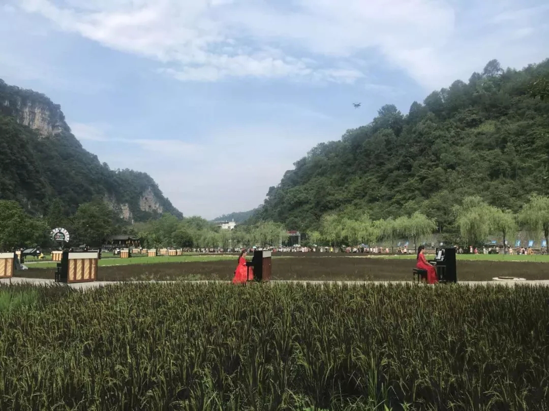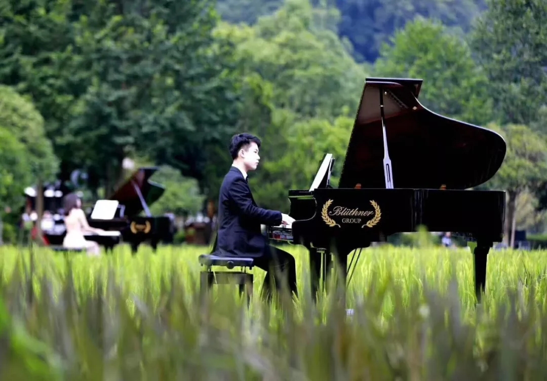在中國著名鋼琴家元杰的磅礴詮釋下,博蘭斯勒的黃金音色在被陽光照耀的天子山巔被奏響;與此同時(shí)在相隔15公里的黃龍洞景區(qū),在微風(fēng)拂過的哈利路亞音樂廳的綠茵屋頂上;在一片金黃盡收眼底的曲折綿延的稻田中,在蜻蜓喚醒的八角亭內(nèi),在溪水推動(dòng)的水車旁,這整片過百平方公里的天然舞臺(tái),118架博蘭斯勒家族鋼琴與演奏者,共同奏響這場(chǎng)世界獨(dú)有的峰林音樂會(huì)!