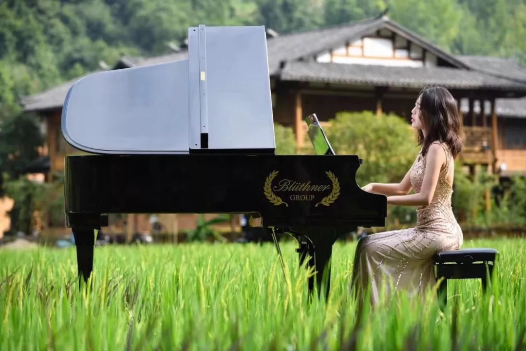 隨著《瀏陽河》、《在希望的田野上》、《歡樂頌》等大家熟悉的旋律響起,時(shí)而磅礴氣勢(shì)、時(shí)而溫婉輕柔,博蘭斯勒的黃金音色響徹仙境般的山川田野之中,余音裊裊,久久回蕩……118架鋼琴發(fā)出的悅耳琴聲,伴隨著美麗的苗族姑娘的翩翩身姿,在希望的田野上奏響同一個(gè)美好愿望,為黃龍點(diǎn)睛!