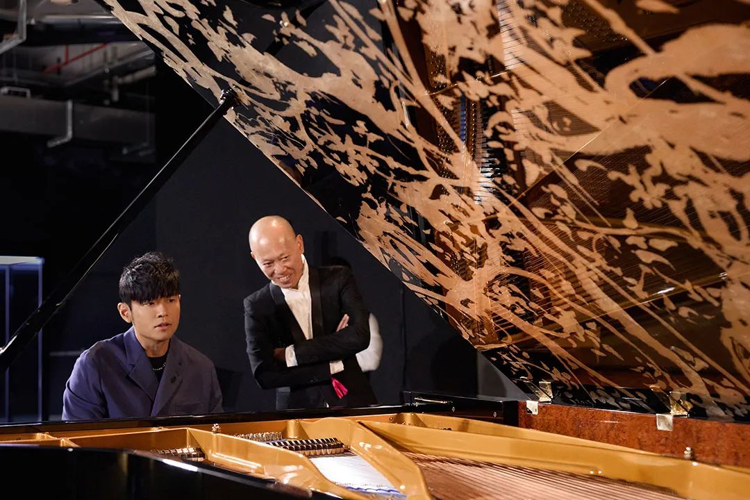 藝術(shù)家鮑楊在《藝起“杰”作》VIP 預(yù)展現(xiàn)場進(jìn)行鋼琴獨(dú)奏