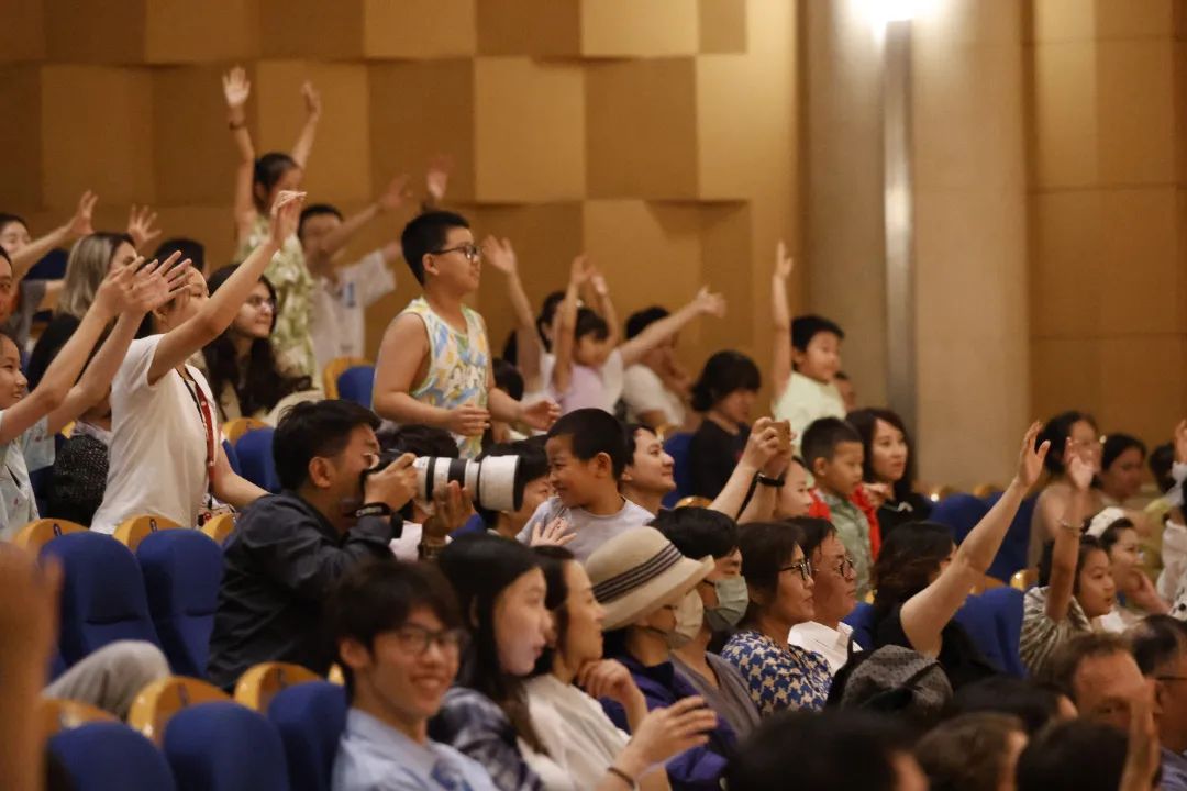 觀眾們不僅僅是坐在座位上靜靜欣賞,他們也積極融入到演出中;隨著音樂的節(jié)拍搖動身體,跟隨歌曲的旋律舞動起來。在互動環(huán)節(jié),觀眾們紛紛起身參與,他們在相互傳遞著彼此的熱情和活力,在這樣積極且互動性極強的音樂會之中,演出現(xiàn)場猶如燃起了一團(tuán)激情的火焰。